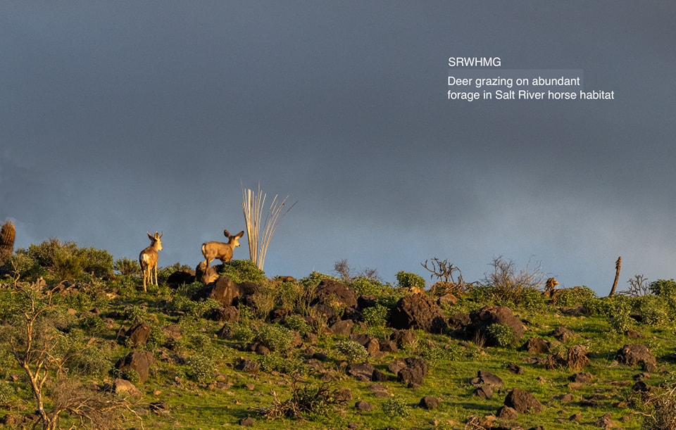 Bighorn sheep are being seen again along the lower salt river with babies, bald eagle populations are thriving and deer are seen grazing the abundantly green hills alongside the horses.