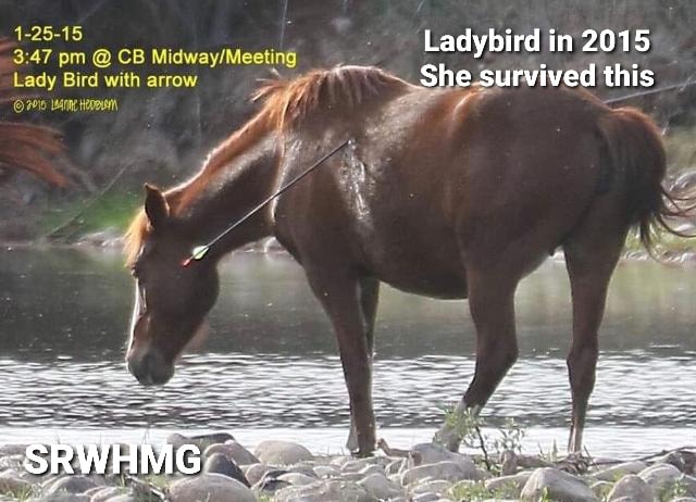 This mare is a survivor. The cattle guard ordeal yesterday is not the first trauma she has been through. (See pic of when she was shot by an arrow)