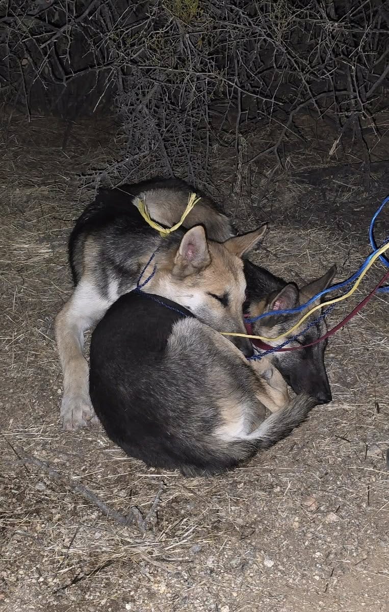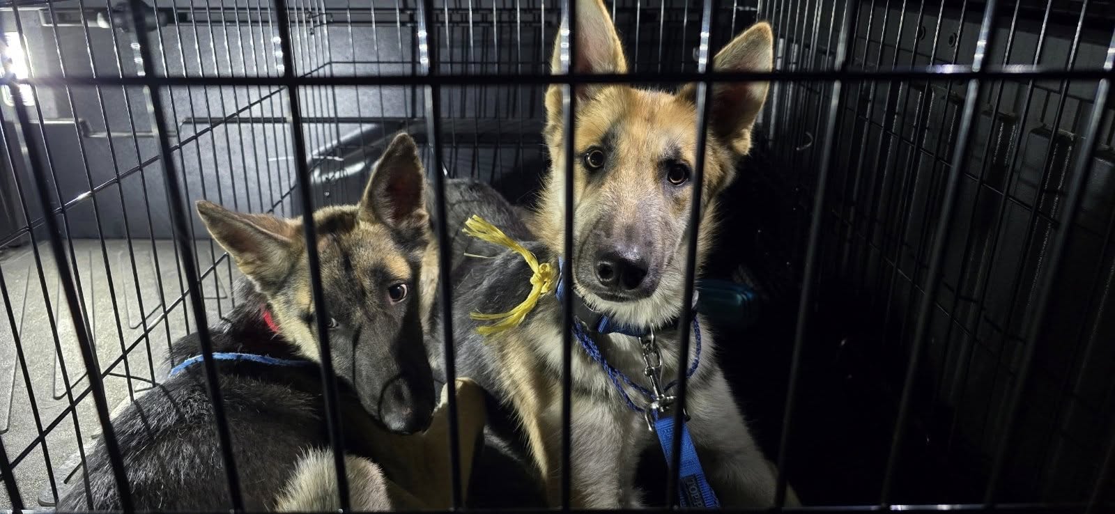 UPDATE: Foster and possible adopter found who will keep these two precious pups together. They were so scared, but calmed down fairly quickly. If only they could let us know how they happened to end up in the forest along a busy road by themselves? Our volunteers seem to always be in the right place, at the right time, to make a difference! Thank you Dori, Christine, Dino, Destini, Simone.