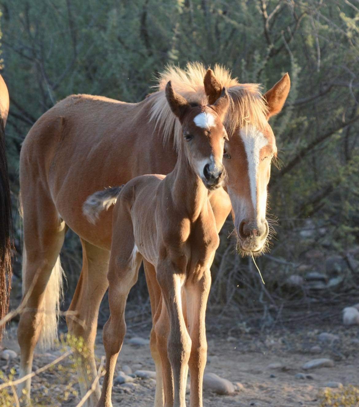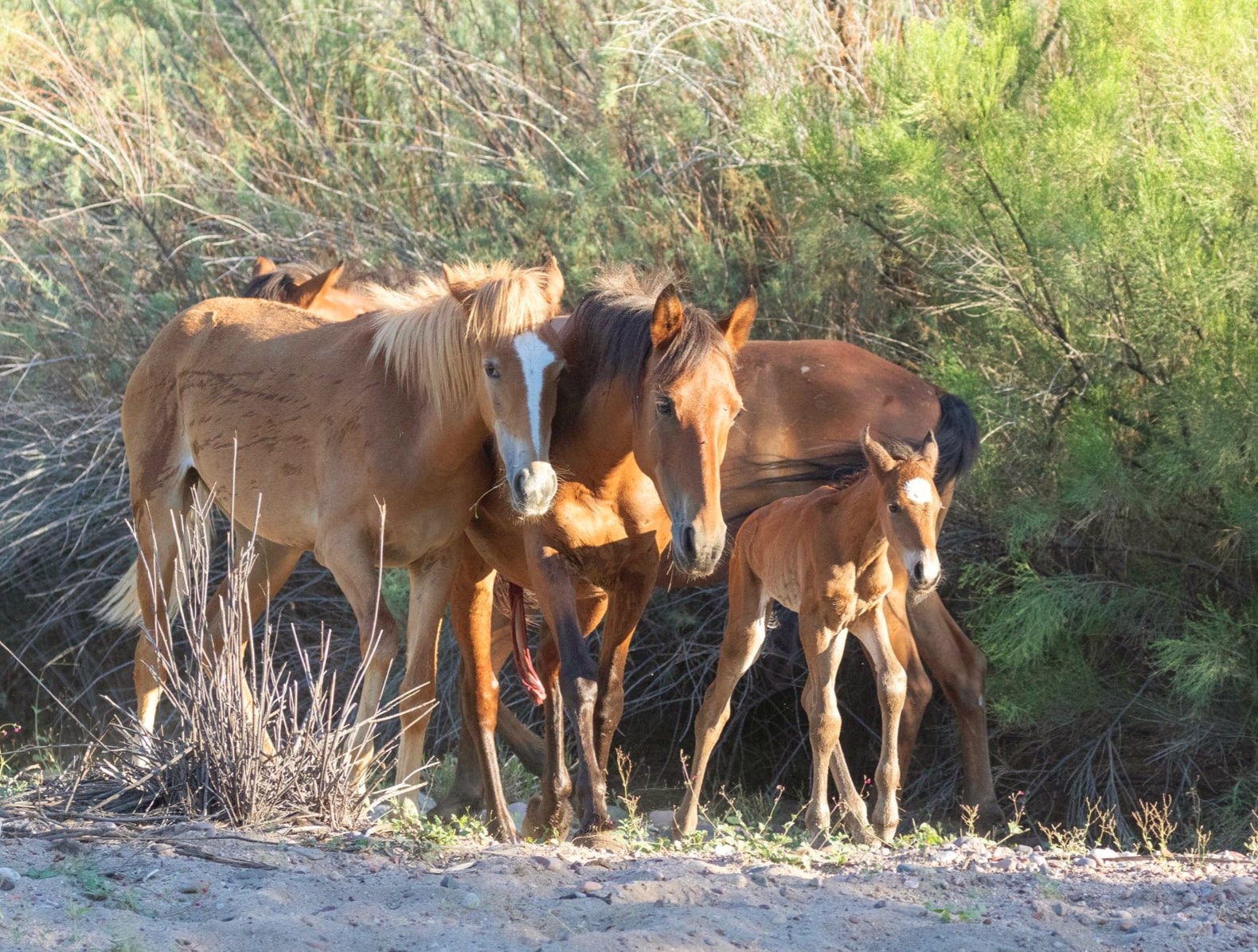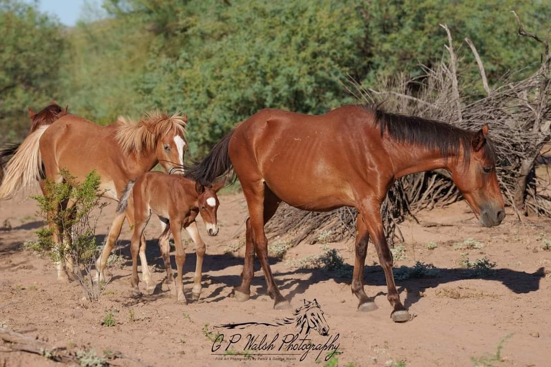 The Salt River wild horses are protected by law and if you are in their way at all, you are interfering, which is illegal. Please keep a distance of 50 ft minimum from Minnie and foal and the entire band, especially at the horse crossing. We just hope that all photographers can keep the BIGGER picture in mind and FOCUS on her well being.