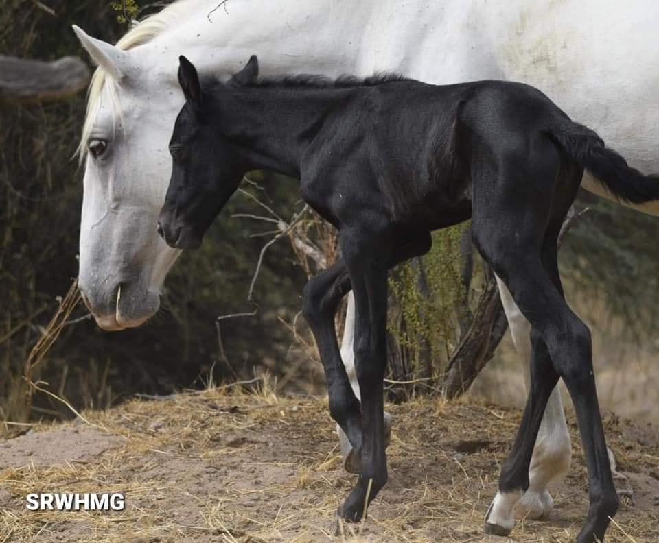 She is pretty special and she’s the only Salt River wild horse born completely black; Moonshadow! Coming from a long line of dominant greys, we knew she wouldn’t stay black for long and look how beautifully she is greying out!